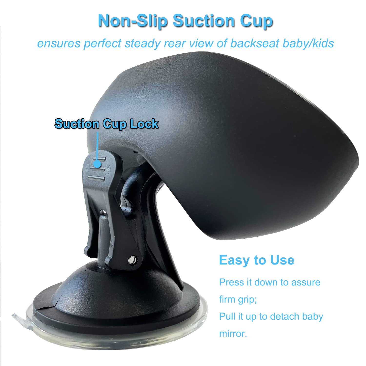 - NON SLIP BABY CAR SEAT MIRROR - Upgraded suction cup ensures strong and reliable suction, preventing car mirror shaking while driving, even on uneven surfaces. Excellent suction power enables this baby car mirror for back seat to stay firmly on the windshield.