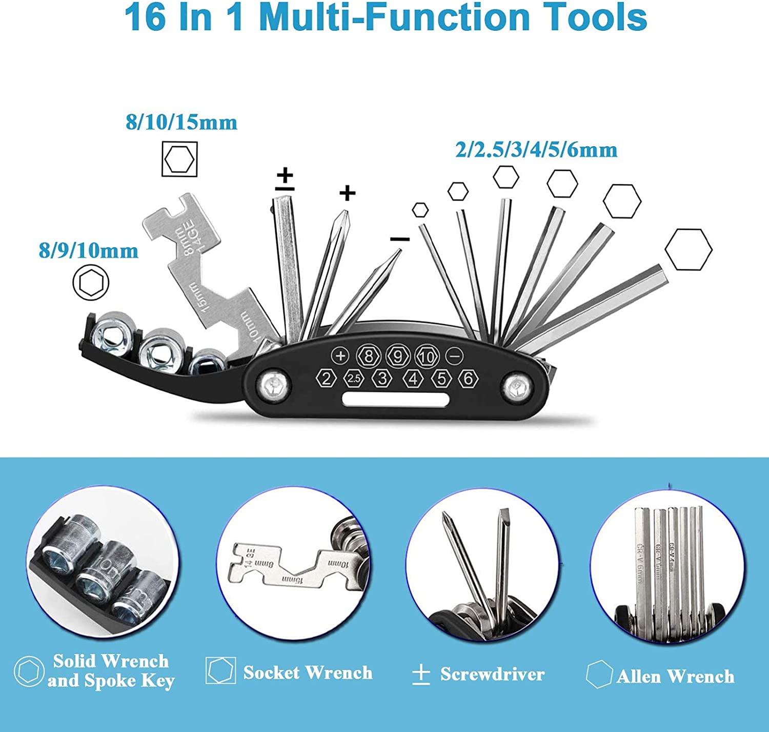- Essential bicycle indoor and outdoor tire repair tool for cyclist – bike repair kit with pump and bag, bike tube repair patch tool kit, emergency All in One bike multi tool are all great cycling kits, bike maintenance kits and bicycle accessories for men women.