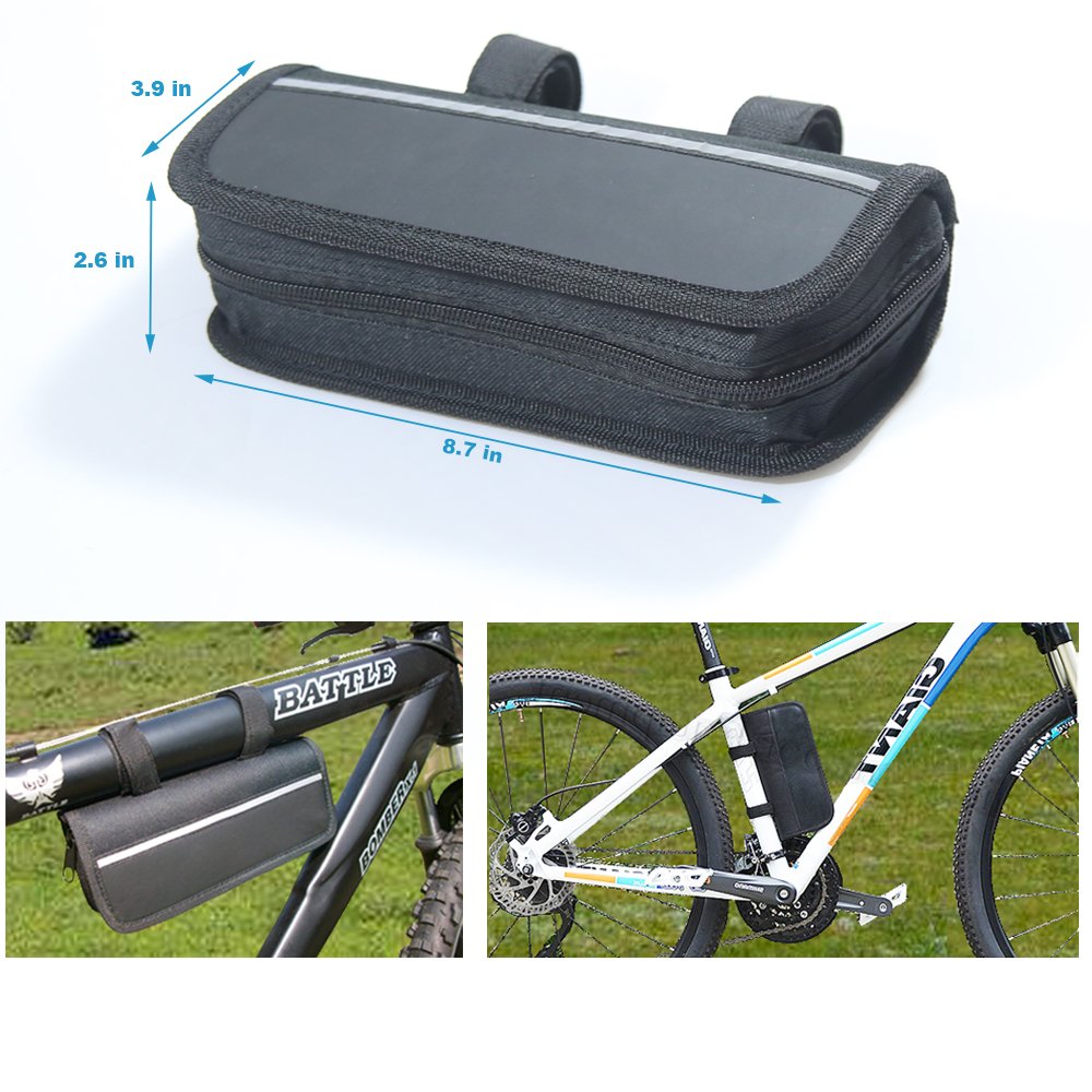 - Bike Repair Kit With Pump and Bag – mini bike pump (120 PSI) is made of high-quality PVC, durable and lightweight, supports both Presta & Schrader valve. With the nylon velcro, you can cling the bike bag on the bike frame tightly without losing it