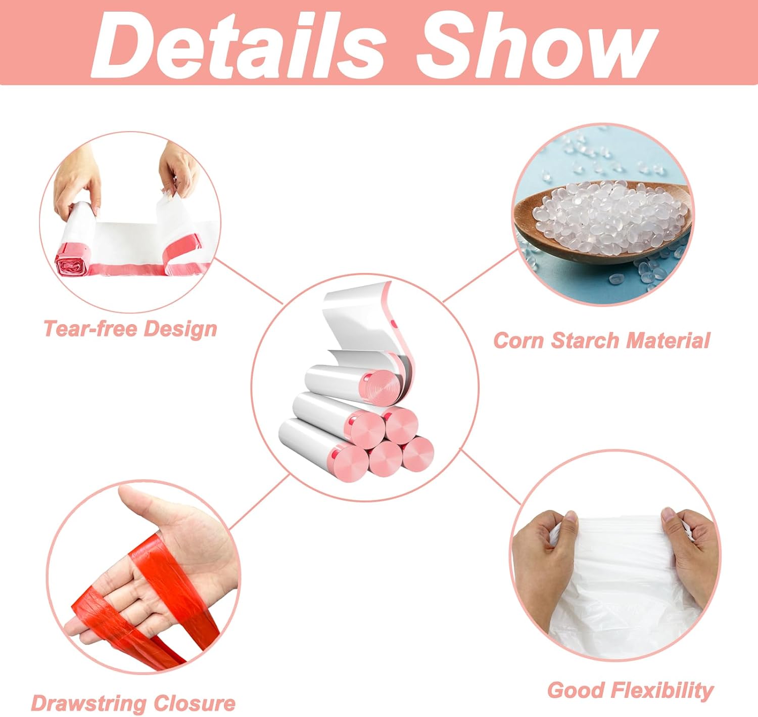 - Echo-Friendly 10-15 Liter Biodegradable Bin Liners – these compostable caddy liners are made from corn starch, 100% compostable and biodegradable, which are non-toxic, harmless and environmentally friendly. Moreover, our small bin bags can be naturally degraded with certain sunlight, air and water in natural environment, compostable and 100% environmentally friendly. Take these rubbish bags home now for a better participation in protecting the environment!