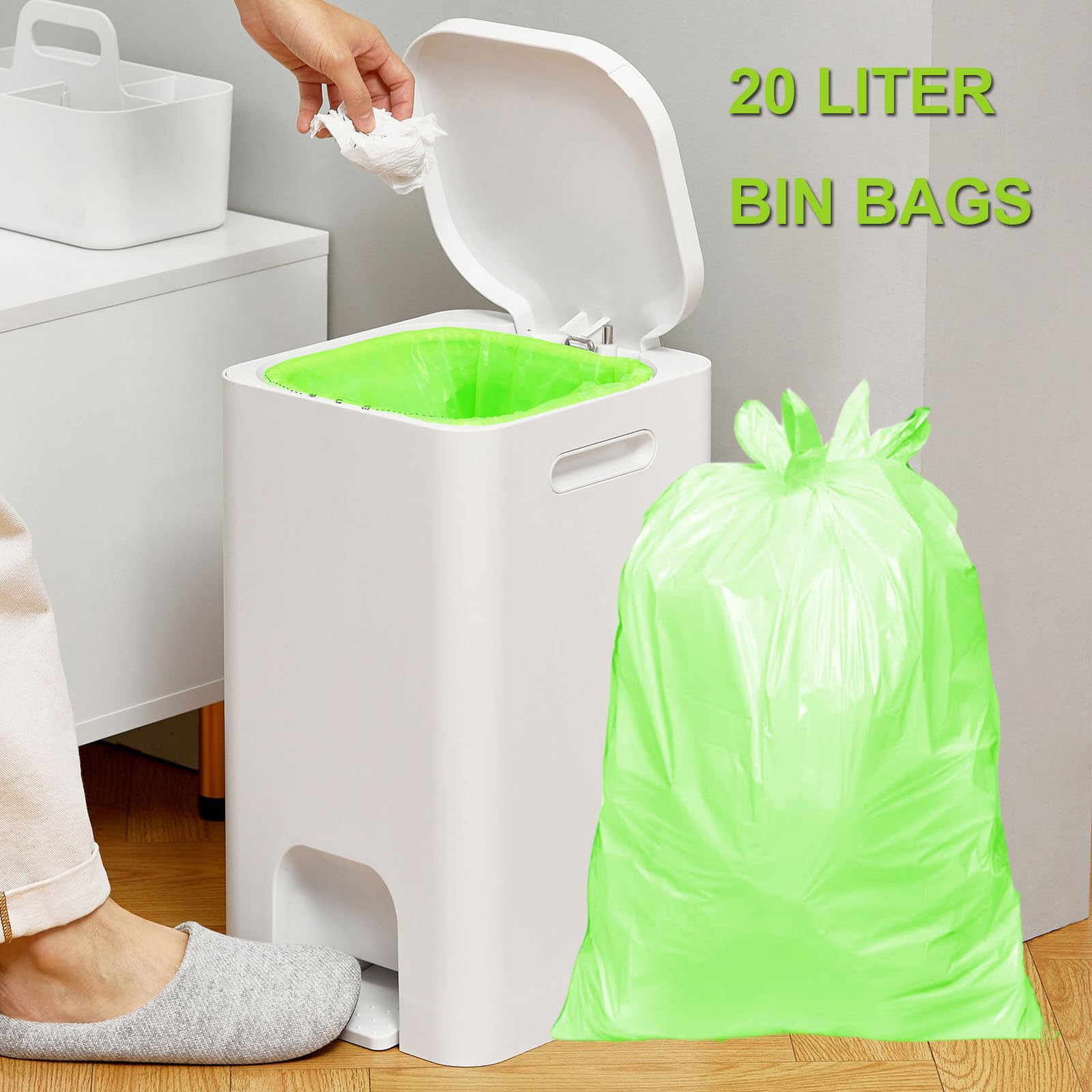 - Multi-Functional 20 Litres Bin Liners – These 20 Litres trash can liner perfectly fit most bins and pedal bins for indoor use. Thick echo-friendly material makes these compostable waste bags an ideal choice for kitchen, bathroom, living room, bedroom, office baby diapers, cleaning dog waste & cat litter & trash recycling.