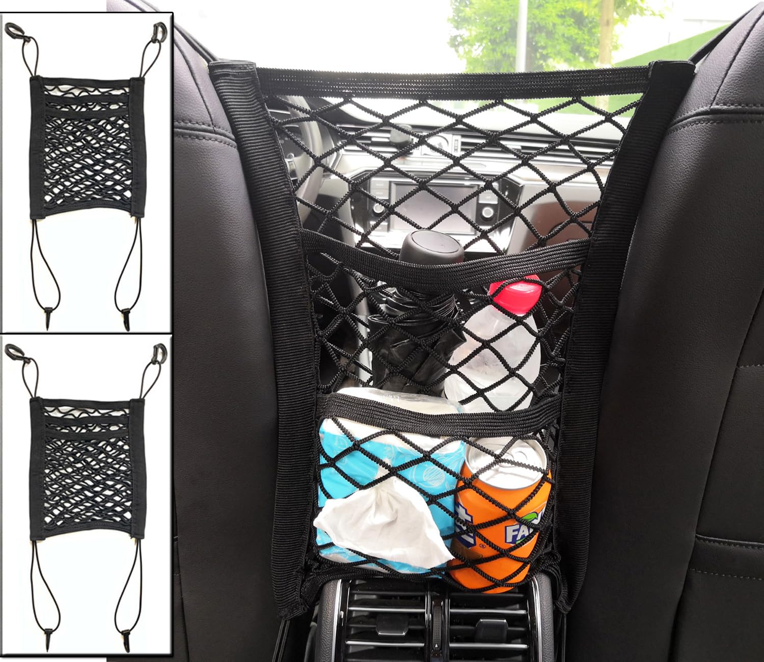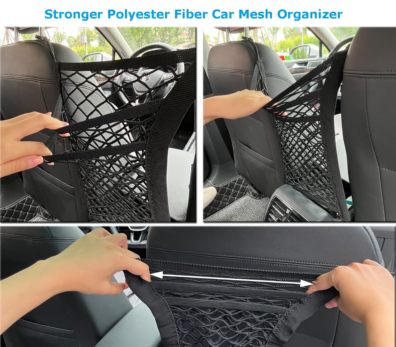 KITBEST (2 Pack) 3-Layer Car Mesh Organizer, Seat Back Net Bag Holder Car Storage Organizer, Dog Car Barrier, Cargo Tissue Handbag Purse Holder, Driver Storage Netting Pouch, Car Accessories