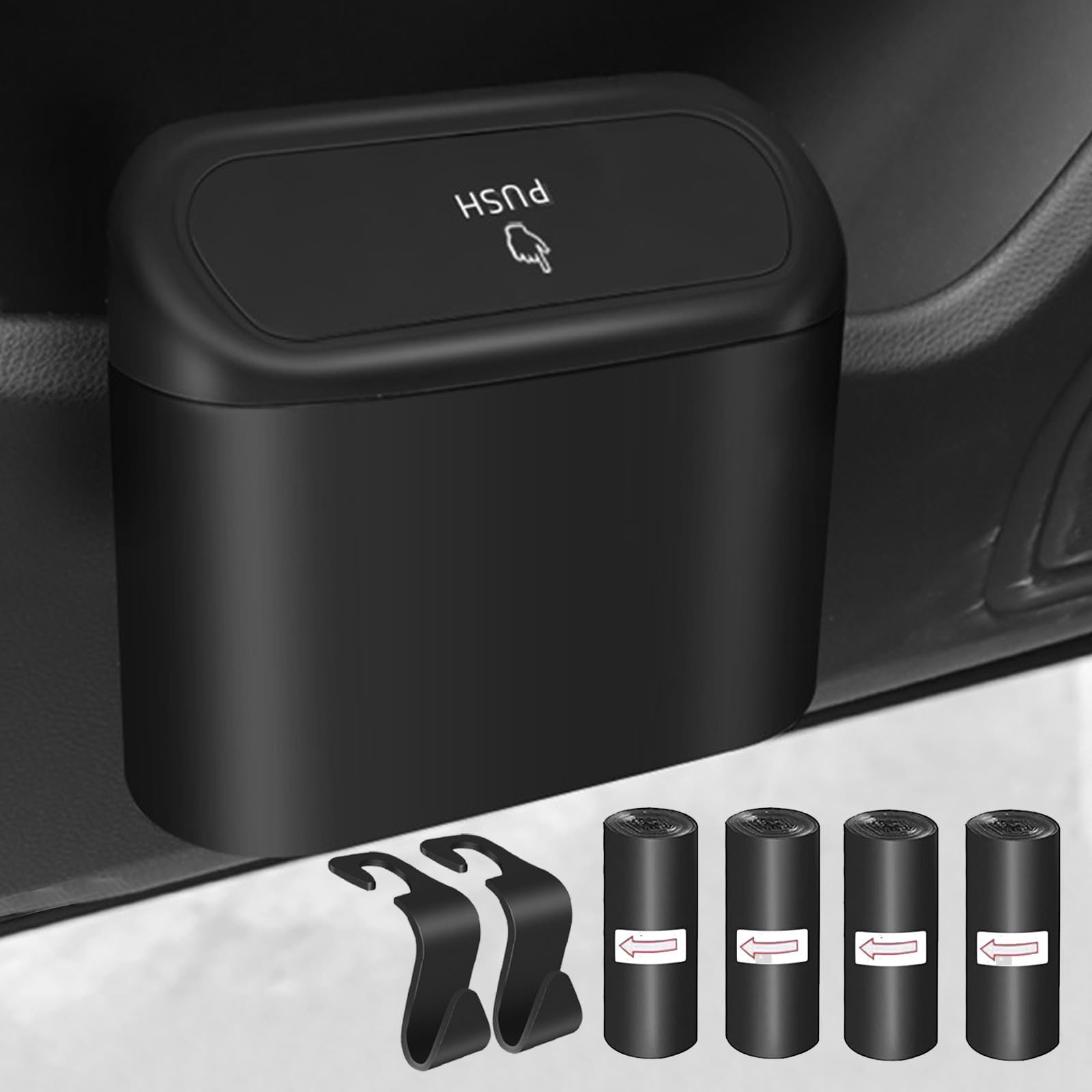 Kitbest Car Bin, Car Trash Can with Lid 60 pcs Trash Bags, Mini Small Car Rubbish Garbage Bins for Front and Back of Car, Portable Cute Car Accessories for Storage and Organization, Waterproof, Black