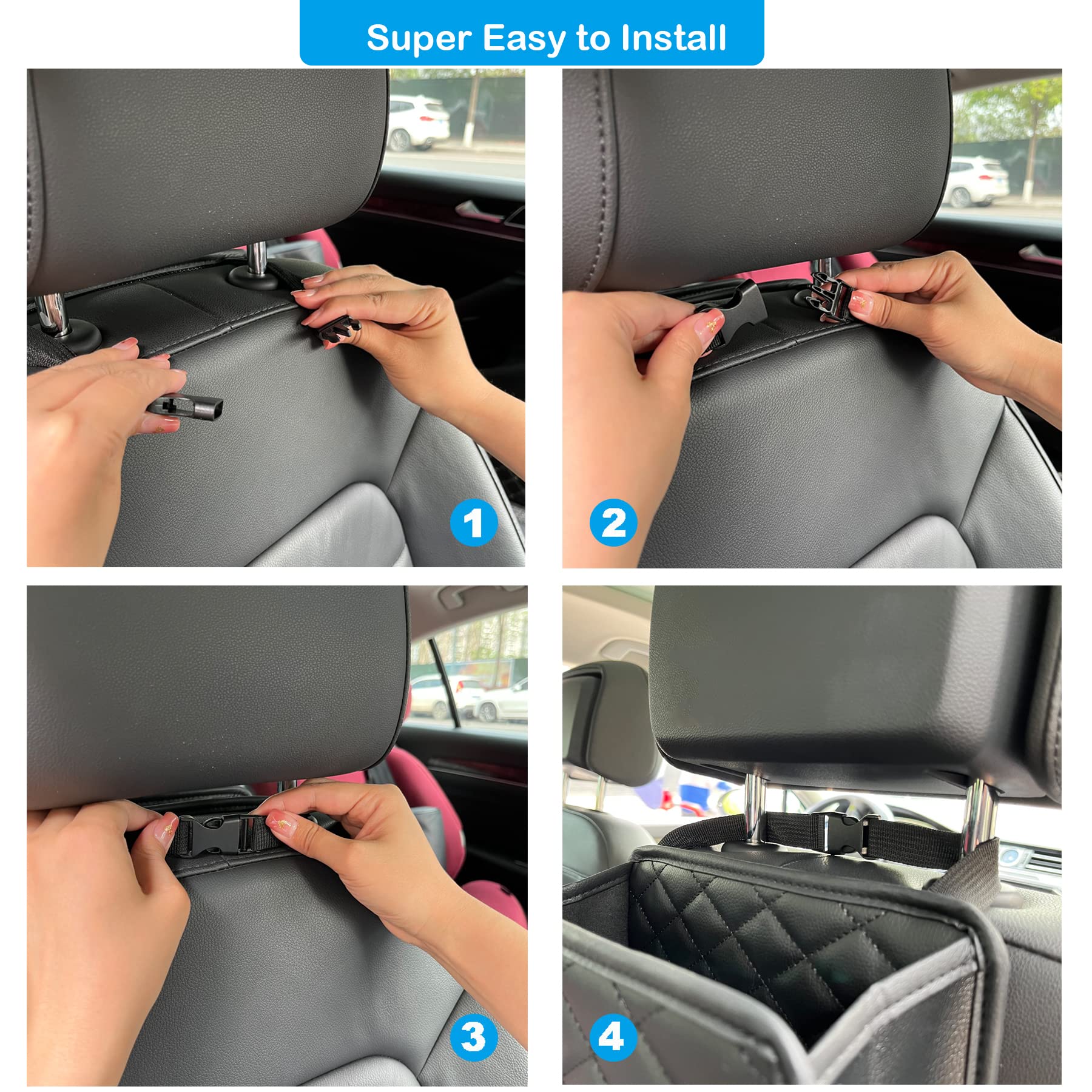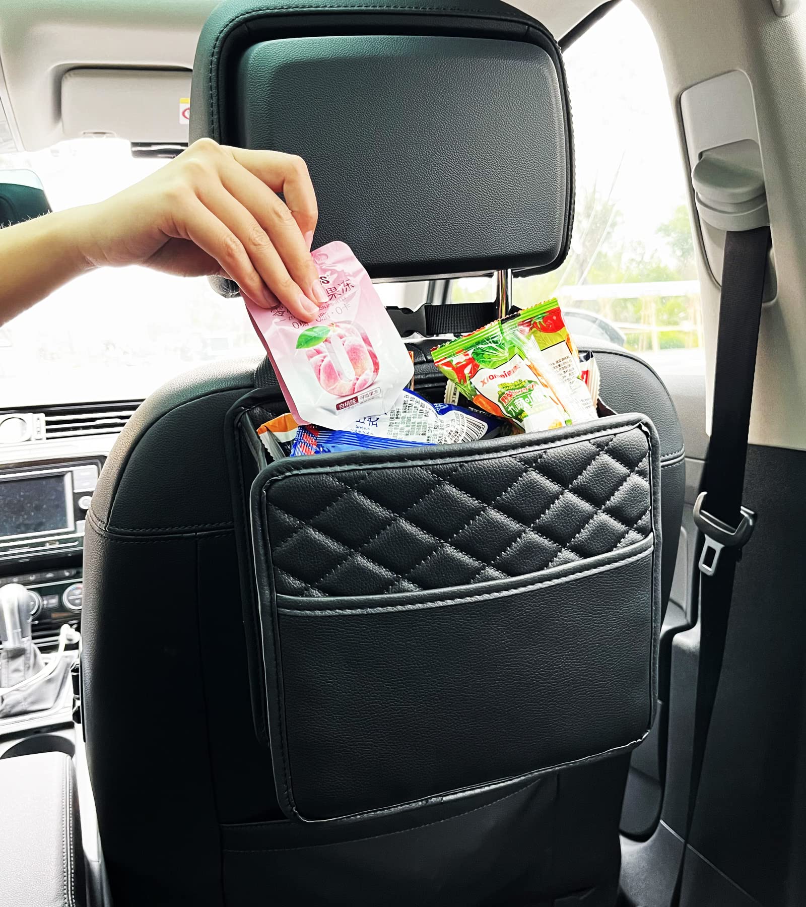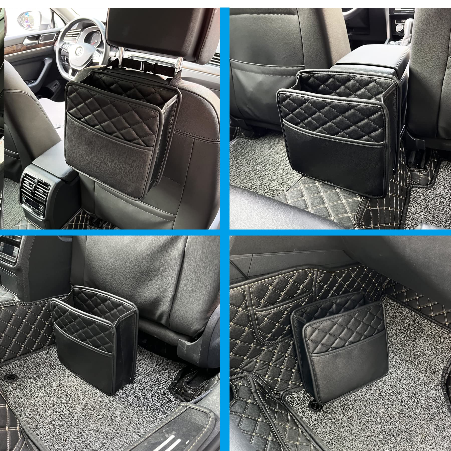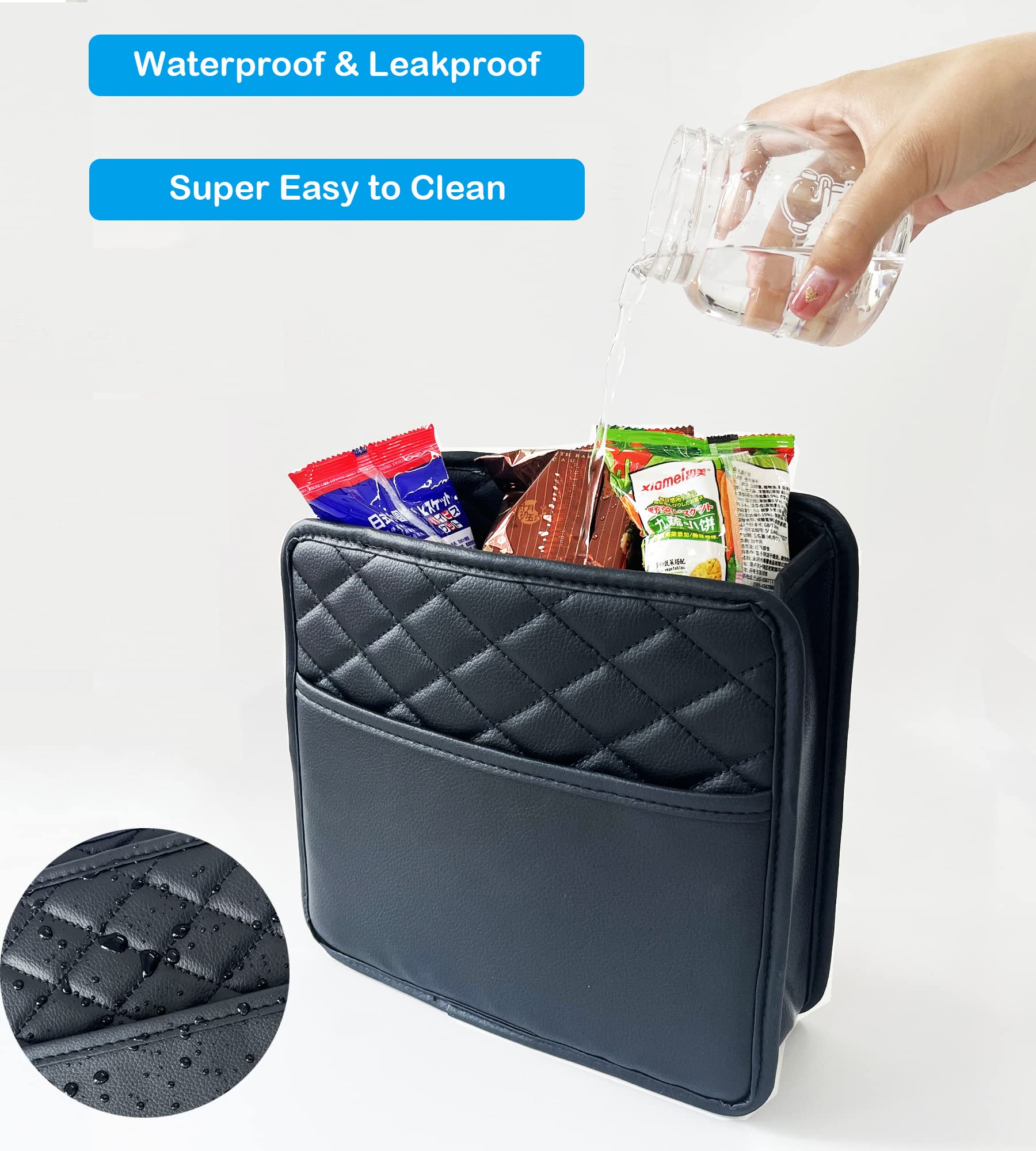 - Car Trash Can with Premium Quality Washable Material - Made of premium leather material, washable and superior durable. The inside of car trash can has a waterproof lining that is leak-proof and washable, easy to clean and wash. No more spills on your car interior.
