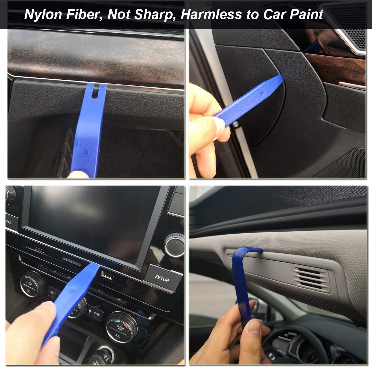 - Multiple Usages - KITBEST auto trim removal tool works great for automotive exterior & interior trim removal and furniture restoration, including wheel hubs, door panels, moldings, window trims, clips, fasteners, dashboards, emblems, panels, audios and radio system without any scratching or damaging your car, even for bicycle tire removing