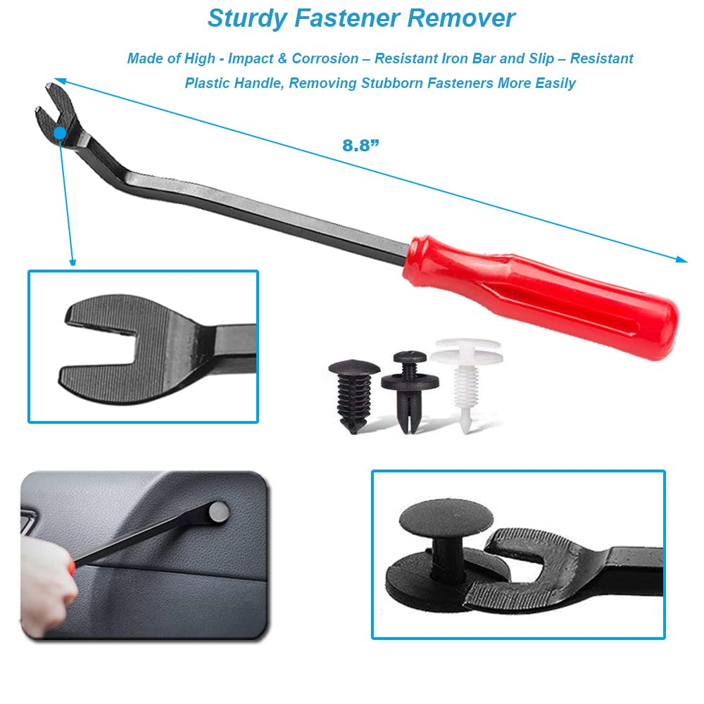 - Sturdy, Durable & Effective – 1 fastener remover & 11 Pcs auto trim removal tool kit, made of pliable nylon fiber material, which would not break or crack easily during use, is ideal to pry up panels and pop open panel retaining pins. KITBEST trim removal tools are impact resistant, eco-friendly, non-toxic, gentler on soft surface but tougher than common nylon car tool set.