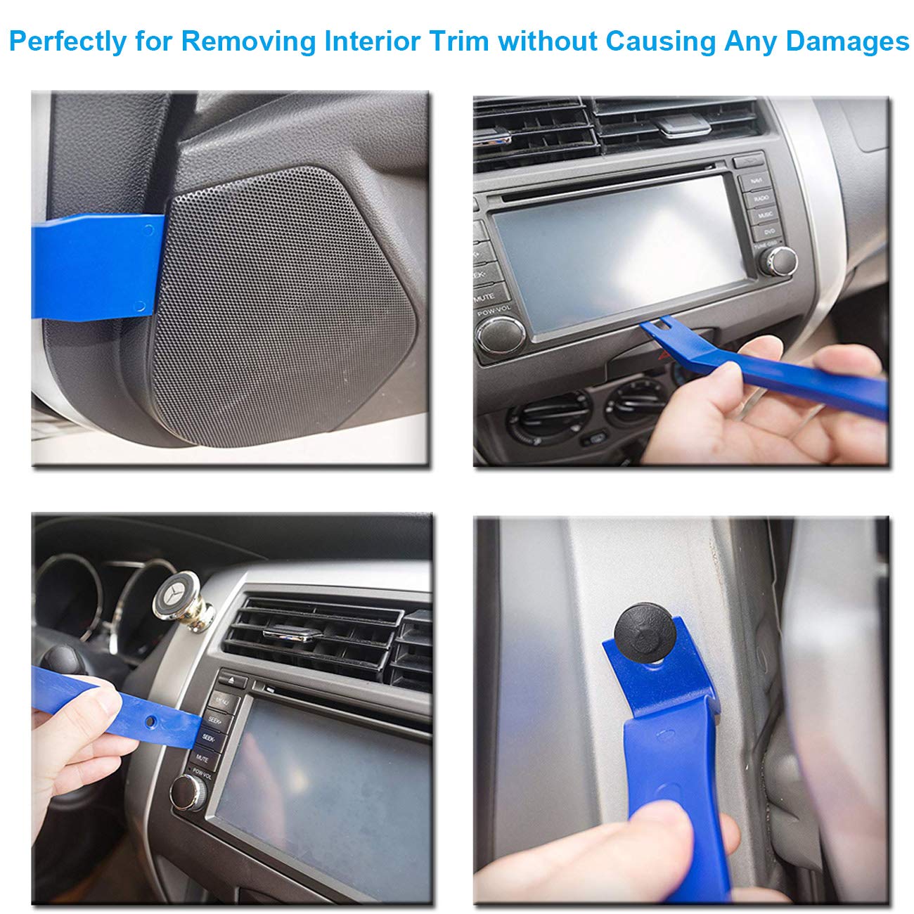 - Multiple Usages - KITBEST auto trim removal tool works great for automotive exterior & interior trim removal and furniture restoration, including wheel hubs, door panels, moldings, window trims, clips, fasteners, dashboards, emblems, panels, audios and radio system without any scratching or damaging your car, even for bicycle tire removing